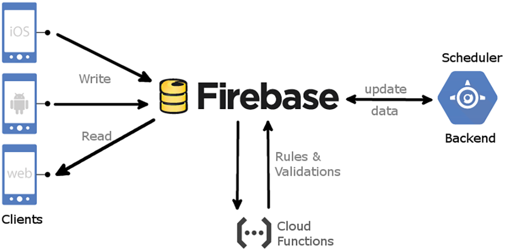Fig. 1 Arhitectura unui sistem decuplat cu Firebase