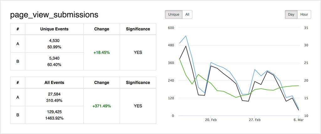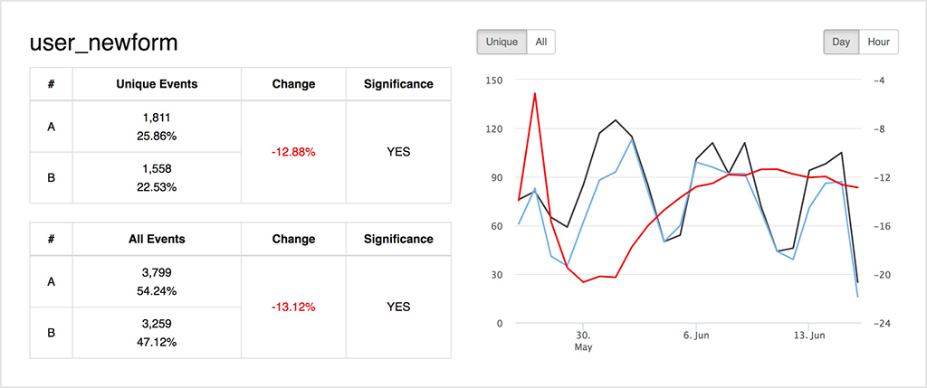 La 123FormBuilder, facem multe experimente: în ultimii doi ani, am realizat 208 teste fără succes (care au indicat că o funcționalitate a avut nevoie de îmbunătățire înainte de lansarea la scară largă) și 66 ode teste cu succes (care au permis ca o funcționalitate să fie lansată către toți utilizatorii). De fapt, avem opt teste în desfășurare în acest moment. E neplăcut să arunci codul la gunoi, dar putem observa că doar 25% din experimentele noastre au reușit de fapt. Dacă nu am fi adunat date și am fi lansat funcționalitățile doar pe baza instinctului, am fi lansat diferența de 75% de actualizări utilizatorilor, ceea ce ar fi afectat negativ performanța noastră!