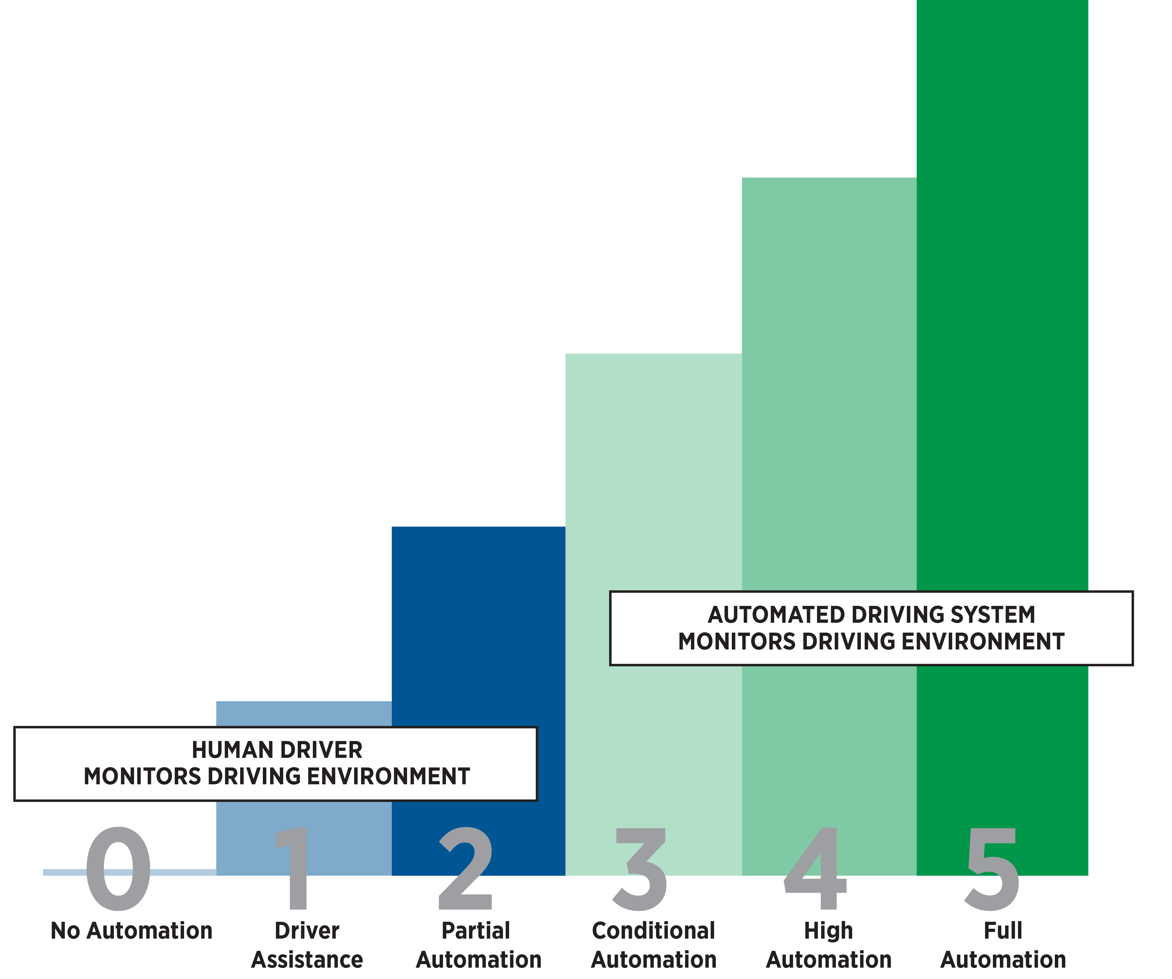 Orice discuție despre mașini autonome începe de la nivelul de autonomie oferit. Standardului SAE descrie șase nivele de autonomie definite în funcție de gradul de implicare a șoferului: