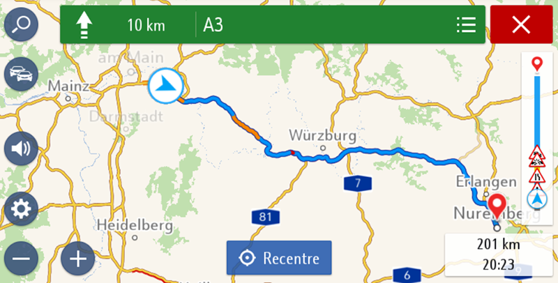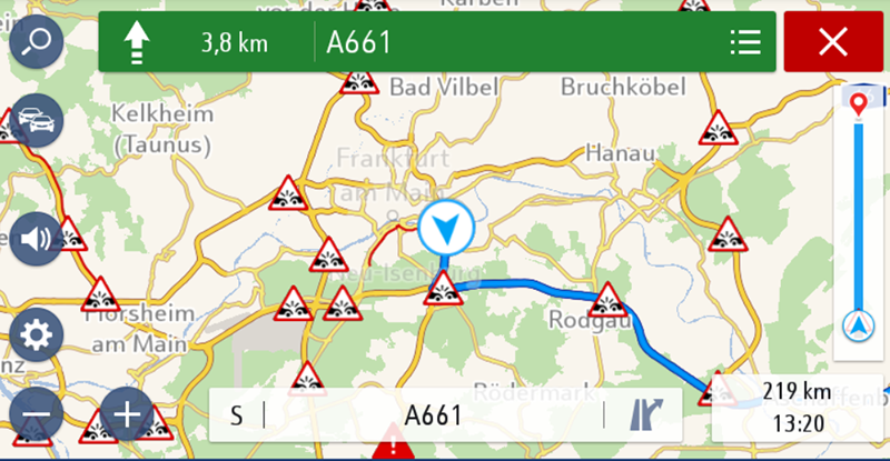 Zona Frankfurt cu multiple mesaje TMC generate şi transmise de Telenav FM: