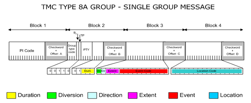 Pentru generarea mesajelor RDS și formarea grupurilor (0A, 1A, 2A, 3A, 8A etc.) este nevoie de un RDS Encoder configurat pentru a trimite grupurile de bază și cele necesare TMC-ului. Definirea secvenţei grupului stabileşte grupurile transmise, frecvenţa lor de transmitere, ordinea lor și include grupul 8A în secvenţă (în cazul nostru). Exemplu de "Group Sequence" transmis de encoder conţinând mesaje TMC: 0A, 1A, 2A, 3A, 8A, 0A, 2A, 8A). Pentru a implementa un serviciu de trafic funcţional şi sigur, trebuie transmise până la 2.85 de grupuri TMC pe secundă. TMC-ul transmite detalii despre condiţiile de trafic, accidente, vreme şi multe alte tipuri de evenimente, folosind o serie de coduri care ulterior sunt decodate de sistemele de navigaţie şi afişate pe hartă. Grupul 3A, Open Data Application 'index' grup, este un grup obligatoriu în cazul transmiterii grupurilor 8A, el conţinând LTN - Location Table Number, LTCC - Location Table Country Code și SID - Service Identifier, toate aceste informaţii fiind necesare sistemului de navigaţie pentru a putea decoda mesajele şi pentru a le afişa corespunzător.