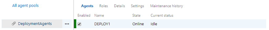 Dacă toate opțiunile au fost valide agentul se va înregistra în instanța de VSTS în grupul DeploymentAgents: