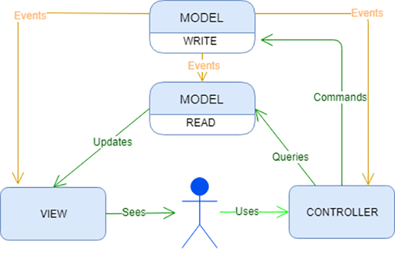 Prin aplicarea conceptului CQRS peste o arhitectură de tip MVC, practic vom folosi întotdeauna același model de date pentru citire, prin queries, respectiv un model diferit pentru scriere, prin comenzi, ceea ce ne va facilita sincronizarea și optimizarea separată a celor două modele în funcție de necesități.