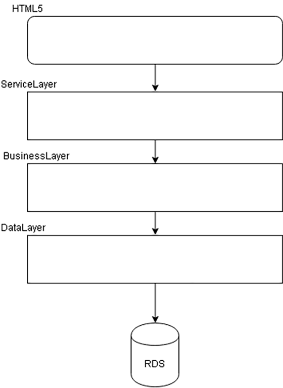Toate nivelele aplicaţiei care sunt sub layerul de HTML5 şi deasupra RDB-ului rulează în acelaşi proces, ceea ce face ca aplicaţia să ruleze ca un monolit.