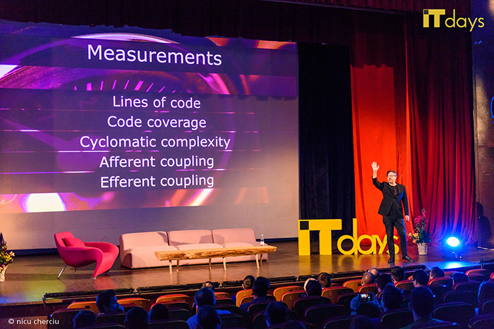 Am deschis evenimentul cu o prezentare foarte bine primită de public, din partea primarului Clujului, Emil Boc. Acesta a vorbit despre inovare despre cei 4T: Talent/Technology/Tolerance/Trust dar și despre proiectele Clujului. Acestuia i-a urmat o prezentare realizată de Peter Lawrey, un speaker cu tradiție deja la IT Days, despre provocările arhitecturii blockchain, punctată de exemple de cod. Pe aceeași scenă principală, Voicu Oprean ne-a povestit despre cum dificultățile se pot transforma în succes în domeniul antreprenoriatului, făcând trimitere și la produsele și direcțiile de dezvoltare AROBS.