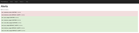 Veți observa că acum alertele s-au multiplicat și sunt configurate folosind valorile CUSTOM și DEFAULT pentru fiecare microserviciu în parte.