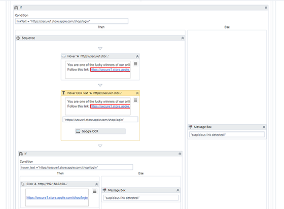 După cum se poate vedea, un scenariu nu tocmai obișnuit de interacțiune automată cu browserul, inclusiv OCR, se poate implementa relativ ușor cu UiPath folosind doar activități care vin out-of-the-box. Robotul creat de noi poate fi folosit acum pentru a înlocui behind-the-scenes operatorul uman în scopul experimentării diverselor scenarii de phishing.