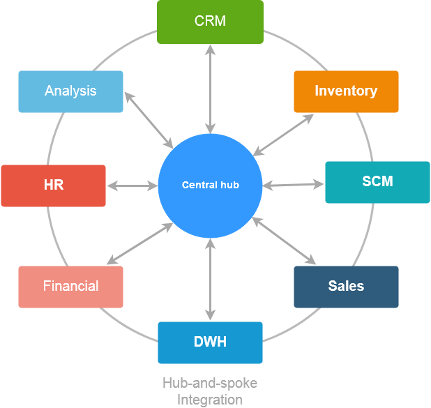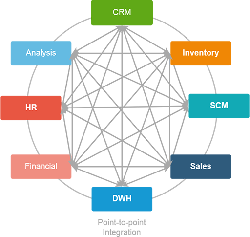 Inițial, pentru a facilita interconectarea acestora, s-a aplicat modelul de integrare point-to-point.