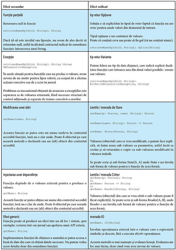 E posibil ca cititorul perspicace să fi observat deja faptul că toate funcțiile cu efecte secundare care au fost transformate în funcții pure prin reificare, au tipul de retur de forma :