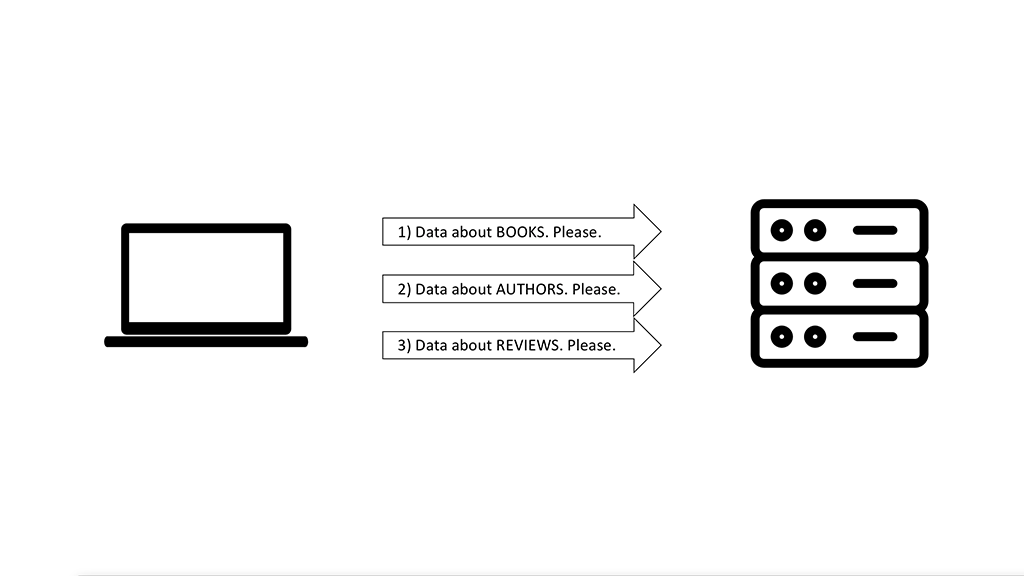 Sunt câteva motive pentru care, totuși, am vrea să avem un intermediar. Unul dintre acele motive și, probabil, cel mai popular, este eficiența. Uitându-ne la o librărie online, am vrea să vedem mai multe detalii despre: cărți, autori și posibile review-uri. Un server clasic REST ne-ar oferi endpointuri diferite pentru toate cele trei entități, iar clientul ar trebui să ceară pe rând ceea ce vrea să vadă.