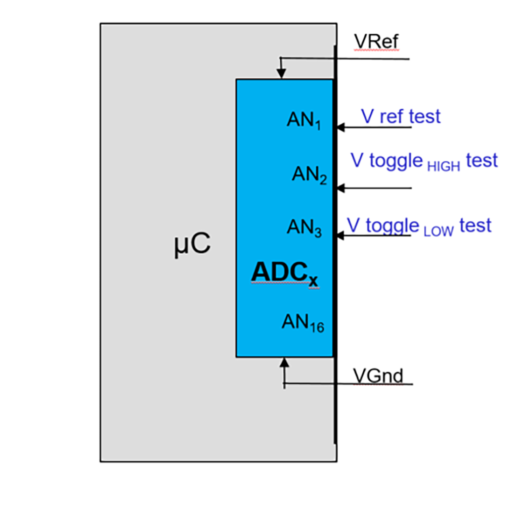 Pentru a putea detecta acest tip de eroare, una dintre intrările convertorului analogic, trebuie să fie conectată la o tensiune fixă de referință independentă, cu o valoare medie între VGnd si VRref (e.g. pentru VGnd - 0V și VRef 3.3V -> Vref test -> 1.6V) ;