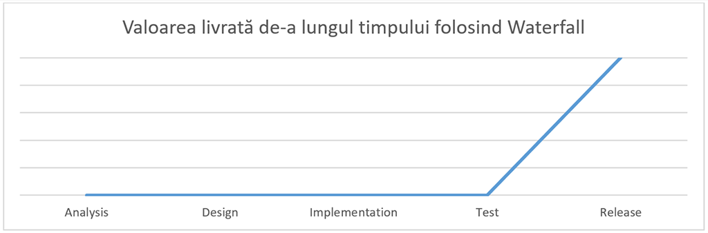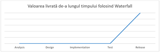 Cu metodologia tradițională Waterfall nu se livrează valoare până în etapele târzii ale proiectului:
