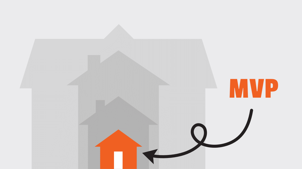 Un MVP (Minimum Viable Product) este un produs cu un set minim de funcționalități esențiale și are ca scop îndeplinirea cel puțin parțială a celor mai importante nevoi ale unor utilizatori dintr-un grup țintă, aceștia urmând să ofere feedback pentru dezvoltarea ulterioară a produsului. Un MVP este funcțional, nu este nici prototip și nici versiune beta a unui produs. Costă mult mai puțin decât produsul final și se implementează într-un timp relativ redus, de obicei o lună sau două. În contextul nostru, un MVP este menit să ilustreze clienților modul de lucru Scrum și să-i convingă de beneficiile acestuia, oferindu-le totodată valoare. Rămânând la analogia cu casa, iată cum arată un MVP în raport cu produsul final: