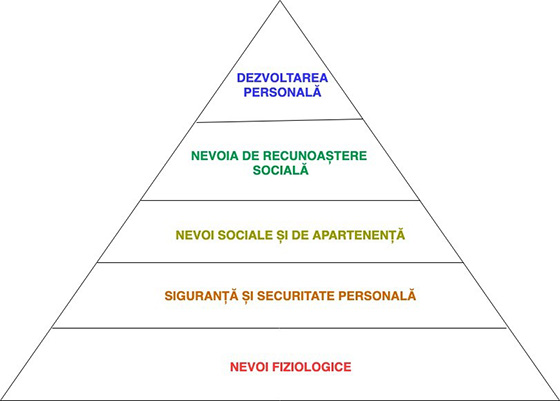 Cel mai folosit model în identificarea acestor valori este cel al lui Abraham Maslow. Cele cinci categorii de valori, prezente în imaginea de mai jos, nu depind una de cealaltă și nu e nevoie să pornim de la primul nivel pentru ca mai apoi să putem face level up. Nu suntem blocați pe nici un nivel al piramidei. Poate pentru unii dintre noi este mai importantă nevoia de siguranță financiară, iar pentru alții, nevoia socială de apartenență la un grup. Nu există răspunsuri corecte sau greșite. De ce? Pentru că toți avem nevoie de ceva anume. În esență, cu toții avem valori, chiar dacă acestea sunt diferite. Atunci ne întrebăm cum putem crea o echipă, cum putem forma un colectiv?