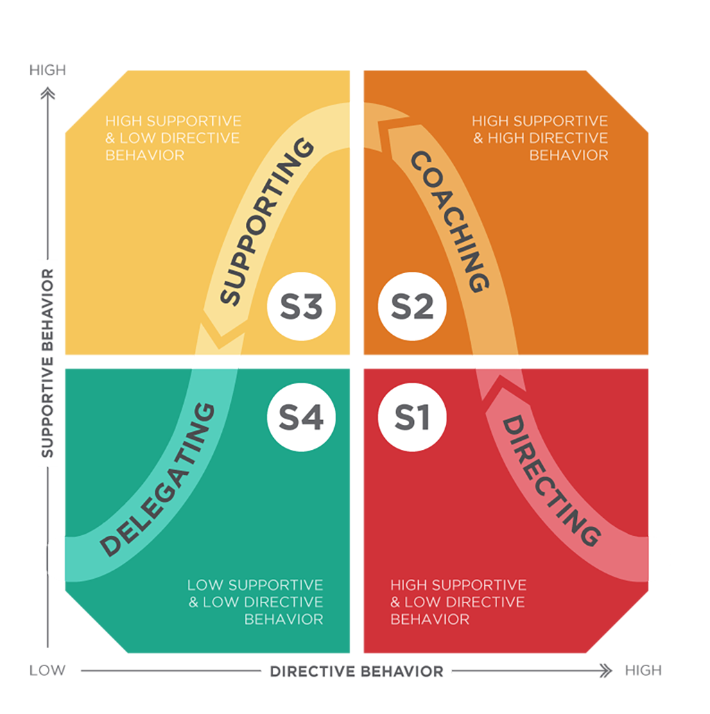 Corespunzătoare acestor patru niveluri de dezvoltare ale individului, Blanchard identifică patru stiluri diferite de a-l conduce și ajuta pe acesta la îndeplinirea sarcinilor.