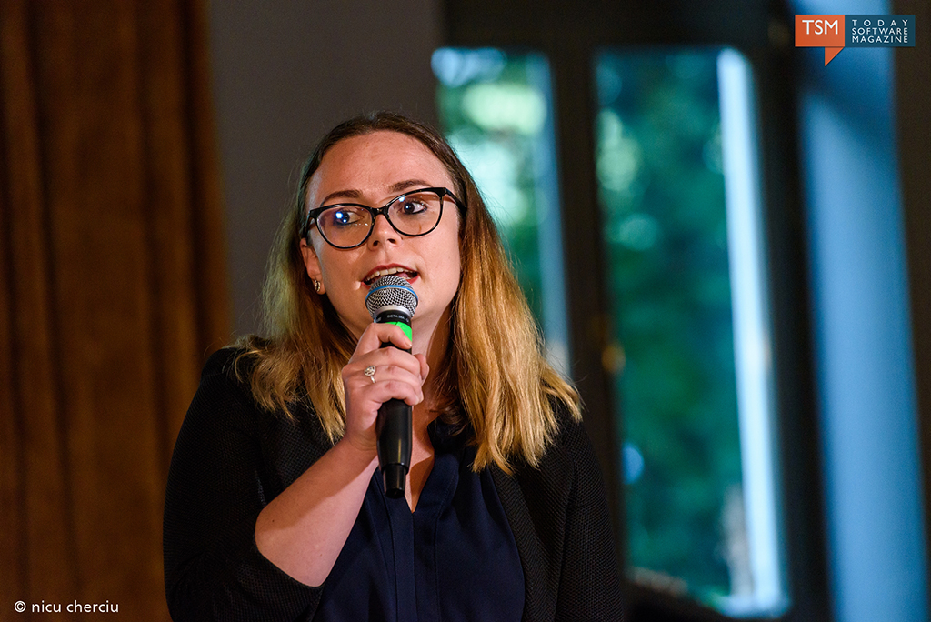 Alina-Maria Perde: Sunt Alina. Sunt Technical Manager la 3PillarGlobal. Sunt implicată în mai multe proiecte din zona analytics și media. Gestionez comunitatea UI la 3Pillar. Sunt o persoană tehnică în ciuda faptului că sunt manager. Am 27 de ani și mă bucur să fiu aici.