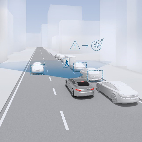 Sistemul radar este eficient în ceea ce privește detectarea obiectelor la distanță, dar pentru ca vehiculul să aibă o imagine detaliată a mediului apropiat, se folosește o tehnologie diferită: senzorii cu ultrasunete. Ultrasunetele furnizează date de pe o arie de câțiva metri, acestea asigurând o hartă foarte detaliată a proximităţii vehiculului. Aceste informații sunt esențiale pentru punerea în aplicare a funcțiilor autonome avansate, precum sistemele de parcare.