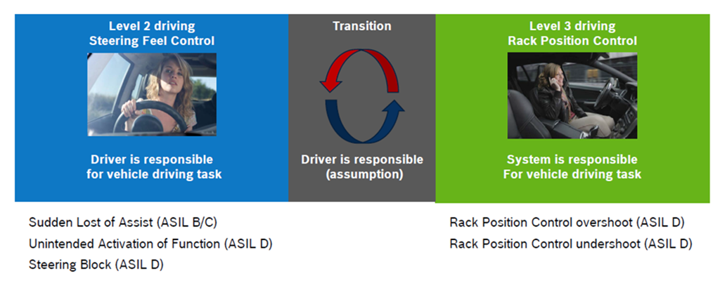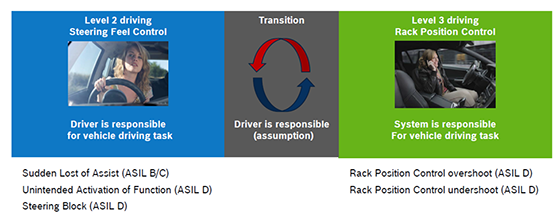 Fiecare nivel urcat în ierarhia capabilităților de conducere automată aduce mai multă responsabilitate autovehiculului. În cazul servodirecției, trebuie să fim siguri că atunci când șoferul este sub control, sistemul nu numai că îl ajută, dar nu este în măsură să împiedice sau să interfereze cu conducerea. Dacă șoferul nu este sub control și vehiculul este responsabil de el însuși, trebuie să fim siguri că servodirecția face exact ceea ce se intenționează. Astfel, posibilitatea ca mașina să sufere de sub- sau supra-manevrabilitate este minimizată sau chiar eliminată. Asigurarea că tranziția dintre conducerea manuală și cea automată devine lină este, de asemenea, o așteptare cheie.