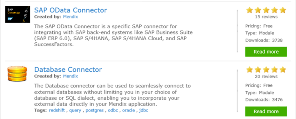 Connector Kit - Scopul Mendix Connector Kit este acela de a permite Java developerilor să adauge cu ușurință noi acțiuni microflow în tool boxul Mendix. Aceste noi acțiuni microflow pot fi share-uite în Mendix App Store. Astfel pot fi folosite și de către useri care nu au cunoștințe de Java.