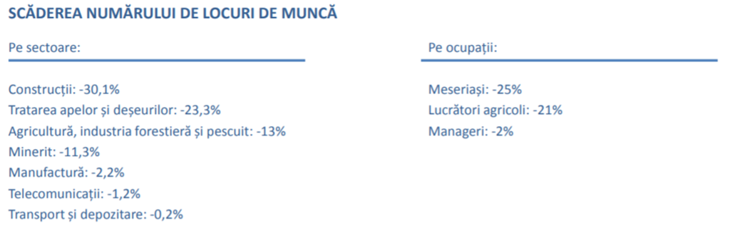 Conform studiilor Uniunii Europene "Skills Panorama", dinamica locurilor de muncă în România va fi următoarea: