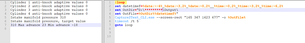 Prin intermediul unui software destinat capturii de ecran și care pune la dispoziție posibilitatea de procesare textului din interiorul acestora, vom realiza capturi de ecran ale parametrilor, la un interval de 5 secunde. Acestea vor fi prelucrate și transformate în fișiere de tip *.txt pentru o analiză ulterioară (vezi Figura 3).