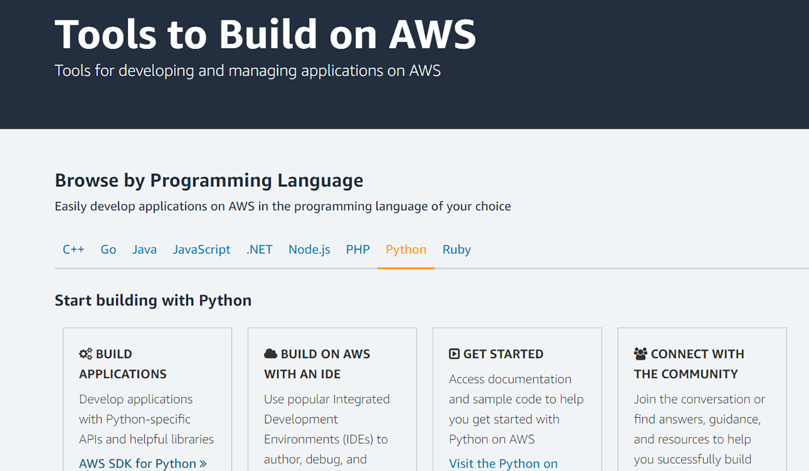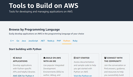 API-ul AWS este disponibil pentru toate limbajele de programare, dar cele care înregistrează cel mai mare succes este Python și Go.