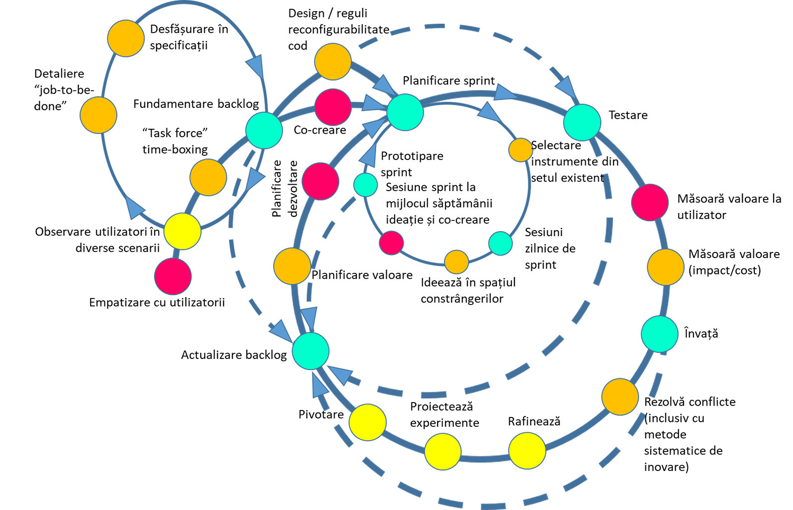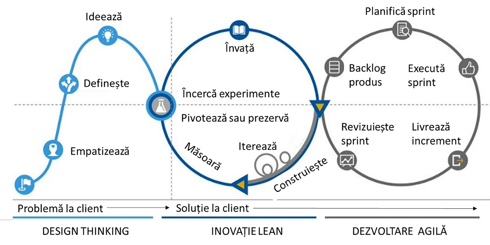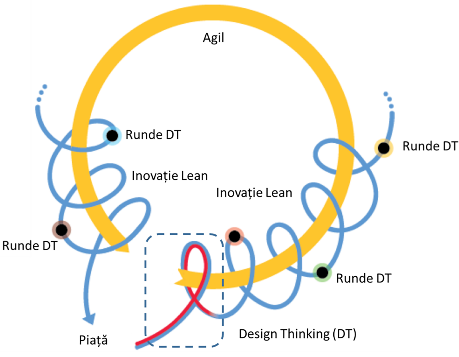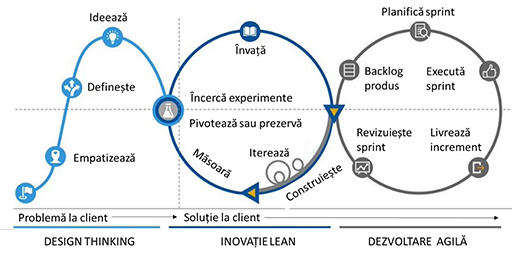 Figura 4. Modelul InnoDev de integrare lean-agile-design thinking în dezvoltarea software.