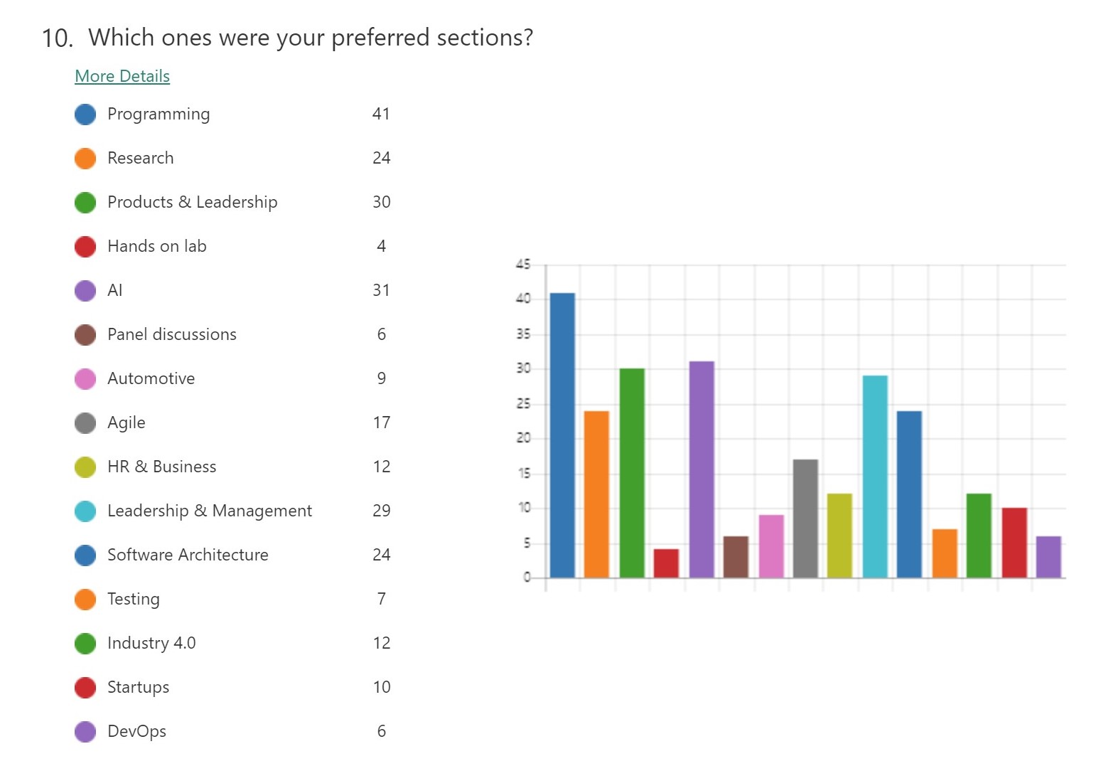 De departe, cea mai apreciată a fost cea de programare, urmată de AI, Produse, Leadership și Management.
