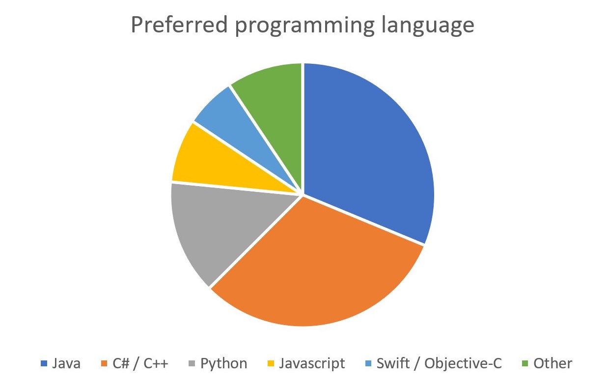 În ceea ce privește limbajele preferate, acestea sunt: Java și C/C#/C++.