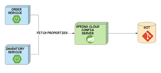 Serverul Spring Config este așadar o aplicație externă care gestionează configurările pentru toți clienții săi, care pot fi la rândul lor alte aplicații Spring, dar și aplicații scrise în alte limbaje de programare. Acesta asigură că toate configurările vor fi gestionate într-un singur loc și că fiecare aplicație va avea configurările corespunzătoare aferente fiecărui mediu. Implementarea implicită a serverului utilizează Git, dar alte implementări pot fi de asemenea ușor integrate. De asemenea, serverul expune un API pentru aceste configurări. Un caz de bază de utilizare a lui se poate vedea mai jos.
