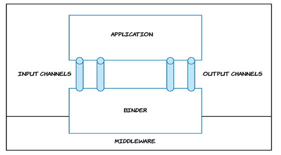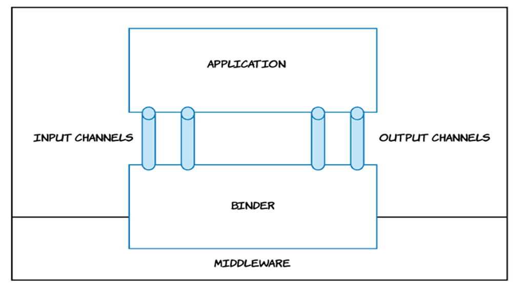 Arhitectura internă a frameworkului urmează o paradigmă similară cu cea prezentată mai sus. Creează linkuri reprezentate de canale de intrare și ieșire între aplicații și binder. Binderul este un concept abstract, central frameworkului. Implementarea sa creează o comunicare cu lumea externă prin brokerul de mesaje. Specificitățile diferitelor tehnologii de mesaje sunt manipulate de implementarea binderului. Canalele reprezintă corelări către destinații externe (topicuri, cozi) și sunt folosite să paseze date între binder și aplicație. Implementările curente pentru binder sunt: RabbitMQ, Apache Kafka, Amazon Kinesis, Google PubSub, Solace PubSub+, Azure Event Hubs, Apache RocketMQ.