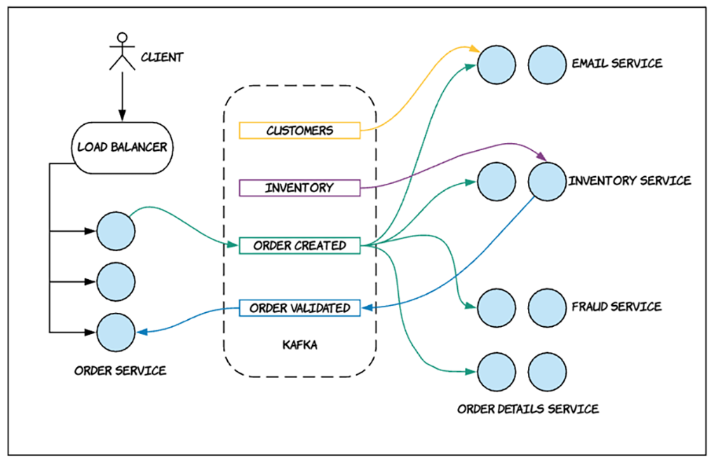 Un mod din ce în ce mai popular de a aborda comunicarea între microservicii este utilizarea de evenimente. Aceasta strategie tehnică are specificitățile și chiar disciplina ei proprie. Comunicarea bazată pe evenimente este o temă abordată de Spring, iar o evoluție a abilităților expuse de Spring e reprezentată de Spring Cloud Stream. Acest framework permite un model de programare unificat care poate fi adoptat în scopul de a ajunge la o arhitectură bazată pe evenimente și la coreografia lor. Există o gamă largă de aspecte care trebuie să fie luate în considerare la o abordare bazată pe evenimente. Ce tehnologii folosim pentru a trata fluxul de evenimente? Cum vor fi tratate serializarea și structura mesajelor? Pe lângă aceste întrebări inițiale, există și alte subiecte tehnice care trebuie stabilite: tratarea excepțiilor, configurările librăriilor client care vor interacționa cu brokerul de mesaje, cât și alte cerințe non funcționale care ar putea să ne influențeze decizia către o tehnologie sau alta.