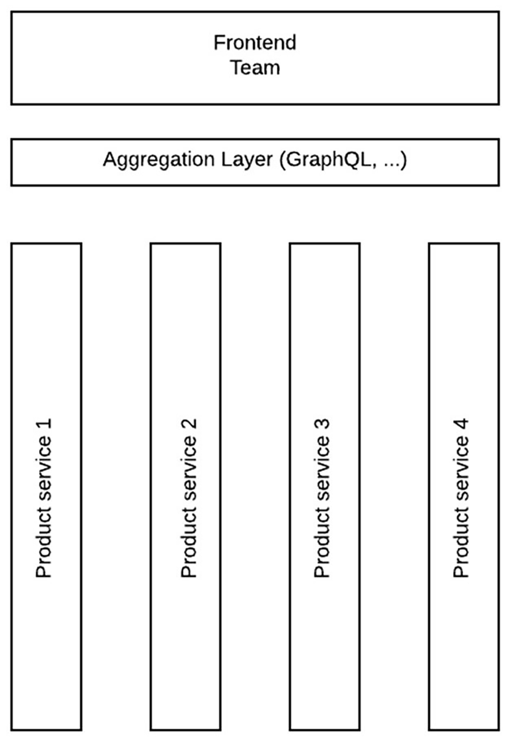 Așadar, avem un frontend scris ca un monolit, dezvoltat de o echipă mare de programatori. Scopul este să dăm controlul înapoi echipei de development a fiecărui microserviciu, în așa fel încât, să poată să își aleagă tehnologia cea mai bună pentru a rezolva o anumită cerință funcțională, chiar și la nivel de frontend.