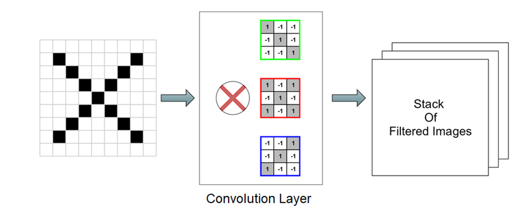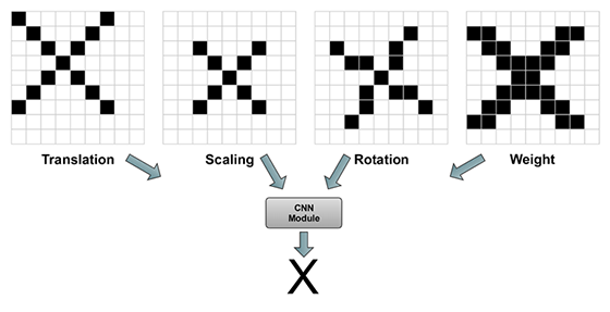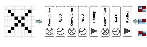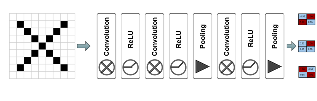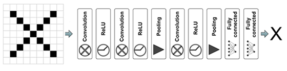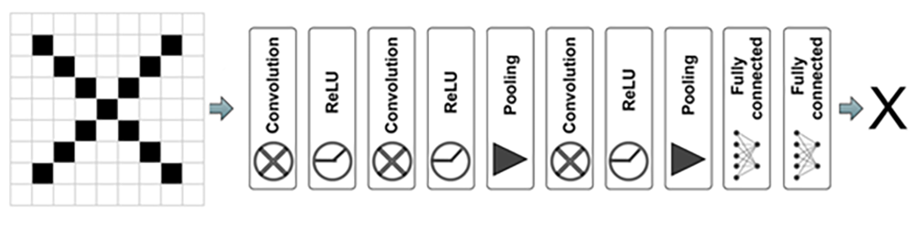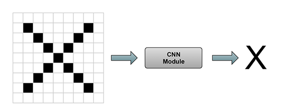 Fig. 2 Imaginea de intrare are litera "X" și se doreşte ca modulul de CNN să identifice corect litera