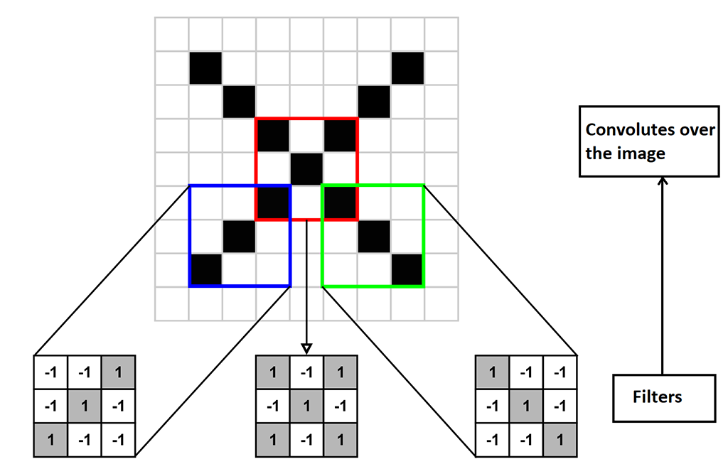 Pentru a găsi aceste trăsături, se pot folosi 3 filtre care vor convoluționa peste imagine (fig. 7).