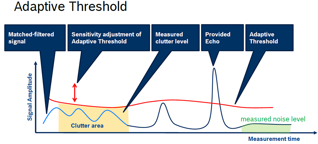 Totuși, cele mai dificile situații de abordat se află la nivele inferioare din punct de vedere software, referindu-ne aici la nivelul care analizează informația brută primită de la sistemele fizice: ecourile. Ultima generație de senzori ultrasonici Bosch poate seta un nivel prag adaptiv pentru a livra informații doar pentru ecourile relevante. Acest nivel prag variabil este influențat de factori precum zgomotul cauciucului la viteză mare sau pe drum umed sau de artefacte precum rampe, drum sau suprafețe zgrunțuroase. Toate aceste situații trebuie identificate dinamic. Fiind în imposibilitatea de a anticipa precis toate scenariile ce pot apărea, folosim machine learning și rețele neuronale pentru a lărgi aplicabilitatea acestui concept de nivel prag adaptiv. Acest lucru înseamnă că folosim tehnici de deep learning pentru procesarea ecourilor.