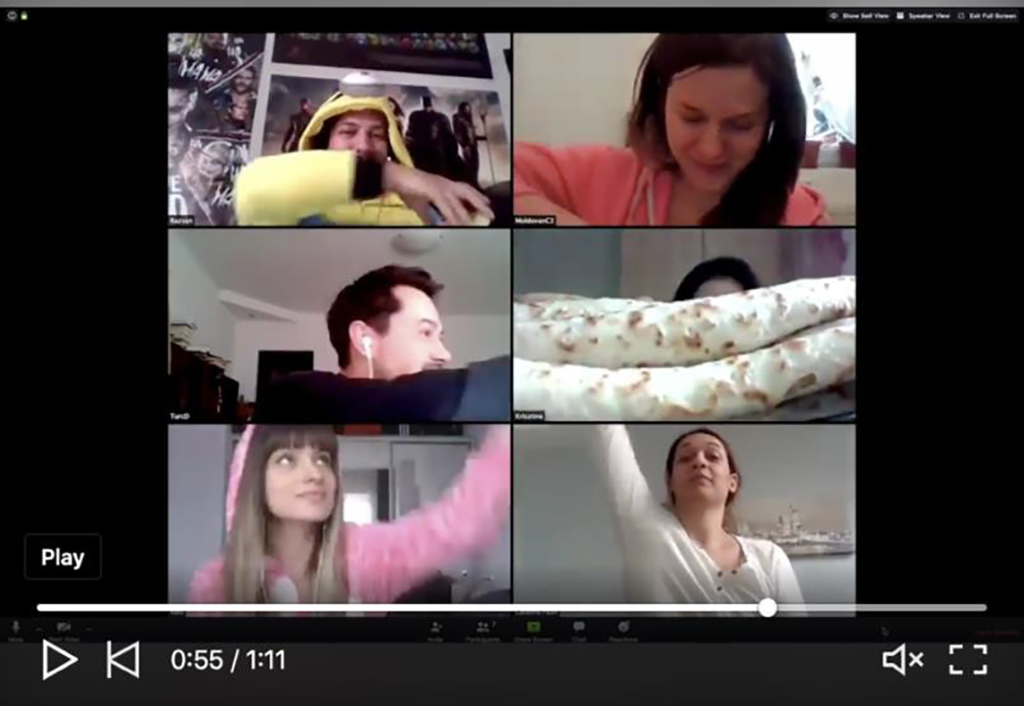 Organizează jocuri scurte împreună. De exemplu un fun-quiz de 15 min cum ar fi cele de pe Kahoot sau Fibbage. ('Adevărat sau fals: România are cele mai puține zile de WFH/lună din UE?')