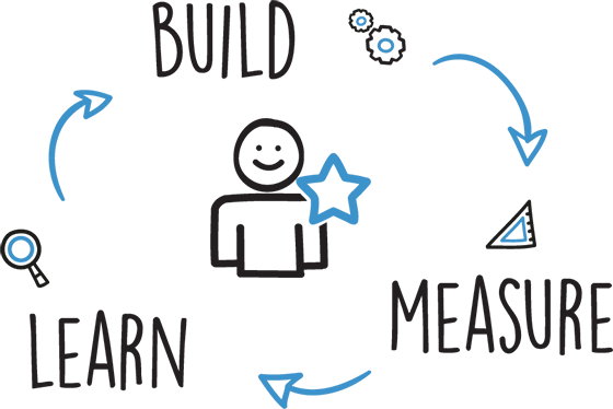 După ce realizați și lansați un MVP, începeți să extrageți date pentru a estima impactul produsului în rândul clienților voștri, pentru a afla ce trebuie îmbunătățit, pentru a construi continuu pe baza acestei înțelegeri.