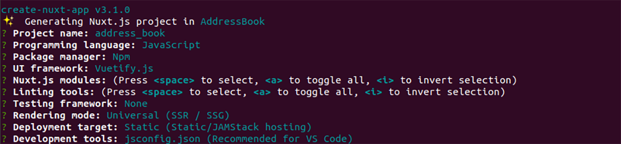 Pornim la drum prin crearea unui nou proiect în Nuxt și răspundem la întrebările wizardului