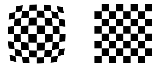 Figura 4 - Intuiția efectului de eliminare a distorsiunilor pentru o imagine cu o tablă de șah (folosită des în procesul de calibrare)