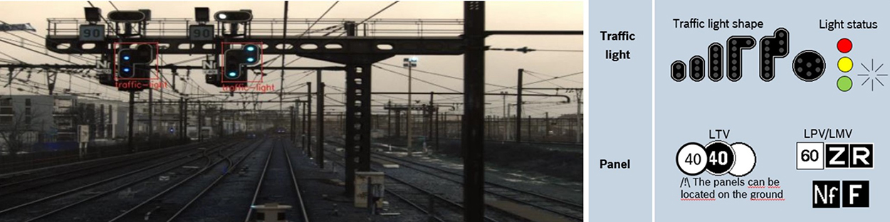 Din perspectiva metodelor de viziune artificială folosite, chiar dacă obiecte precum mașini sau pietoni rămân în continuare relevante, problema devine diferită din două motive principale. În primul rând, detecția benzii de mers se reduce la detecția șinelor pe care trenul sau tramvaiul va merge, iar interpretarea dinamicii scenei este ghidată de aceasta traiectorie pe care trenul sau tramvaiul implicit o va urma (Figura 7). De asemenea, întreaga semnalizare feroviară este complet diferită de cea rutieră. Prin urmare, metode precum detecția și clasificarea semafoarelor sunt adaptate la noile cerințe (Figura 8). Dezvoltarea unor astfel e tehnologii permite progresul în toate domeniile cheie pentru viitorul tren autonom, incluzând detectarea obstacolelor, geolocalizare, supravegherea mediului și a trenurilor, servicii pentru clienți și gestionarea evenimentelor neașteptate.