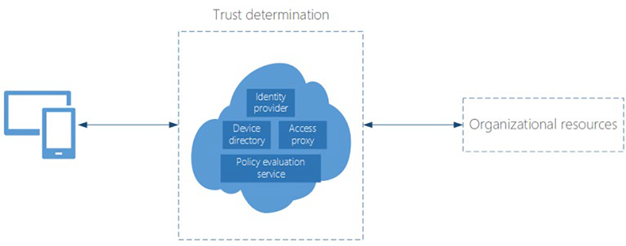 În timp ce în infrastructurile On-premises ale organizațiilor, utilizatorii foloseau computere poziționate de regulă în rețeaua internă protejată, accesând aplicații și servicii stocate pe serverele din datacenterele companiei, beneficiind uneori de sisteme interne închise neexpuse conexiunilor din și către Internet, utilizatorii platformelor de cloud accesează aplicații și date din datacenterele globale ale vendorului, organizația nemaiavând controlul direct al conturilor de utilizator, al mediului de rețea și, mai ales, a multitudinii de dispozitive folosite de utilizator.