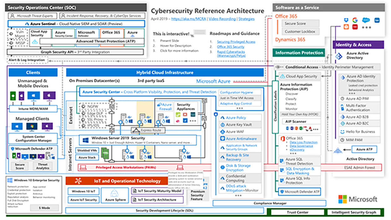 Plecând de la modelul descris de CSA, Microsoft a definit și integrat în oferta de servicii cloud, principiile securității mediilor enterprise hibride cu titulatura Cybersecurity Reference Architecture: