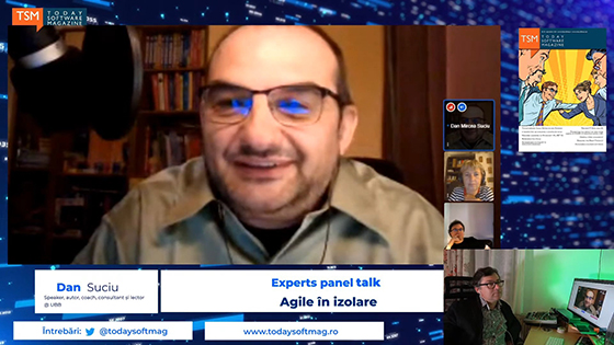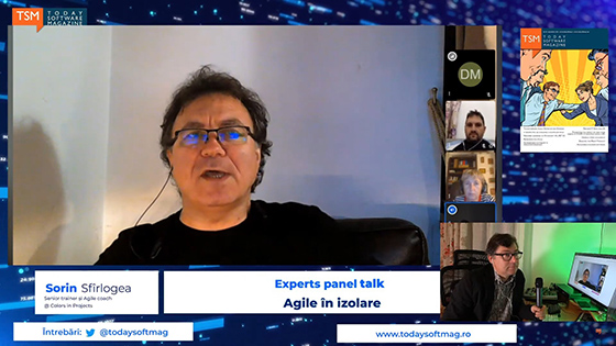 Sorin Sfîrlogea: Sigur că nimeni nu a anticipat așa ceva, dar industria software s-a pliat repede la noua situație. Chiar și pentru industria software, ca să completez ce spunea Bogdan mai devreme, punctul sensibil este calitatea leadershipului din organizațiile ce folosesc Agile. Când spun leadership, mă gândesc la product owneri și scrum masteri. Claritatea pe care o pot da, modul în care mobilizează echipa, modul în care structurează totul sunt aspecte esențiale în această perioadă. Când se lucrează fizic, multe aspecte ale muncii de product owner sunt compensate de echipă. Dacă nu ai spus tu, echipa întreabă sau se întreabă reciproc. Interacțiunea dintre oameni creează o energie suplimentară și rezolvă lucrurile. Când fiecare e acasă apare o lentoare, o amânare, o întârziere, o productivitate mai mică. Nu vom fi niciodată pregătiți pentru schimbări. Agile nu mai este o modă, ci o necesitate. Bankingul, energia, utilitățile sunt presate să devină mai digitale, mai Agile. Instrumentele acestor industrii nu mai sunt suficiente și vor trebui să devină Agile de nevoie.
