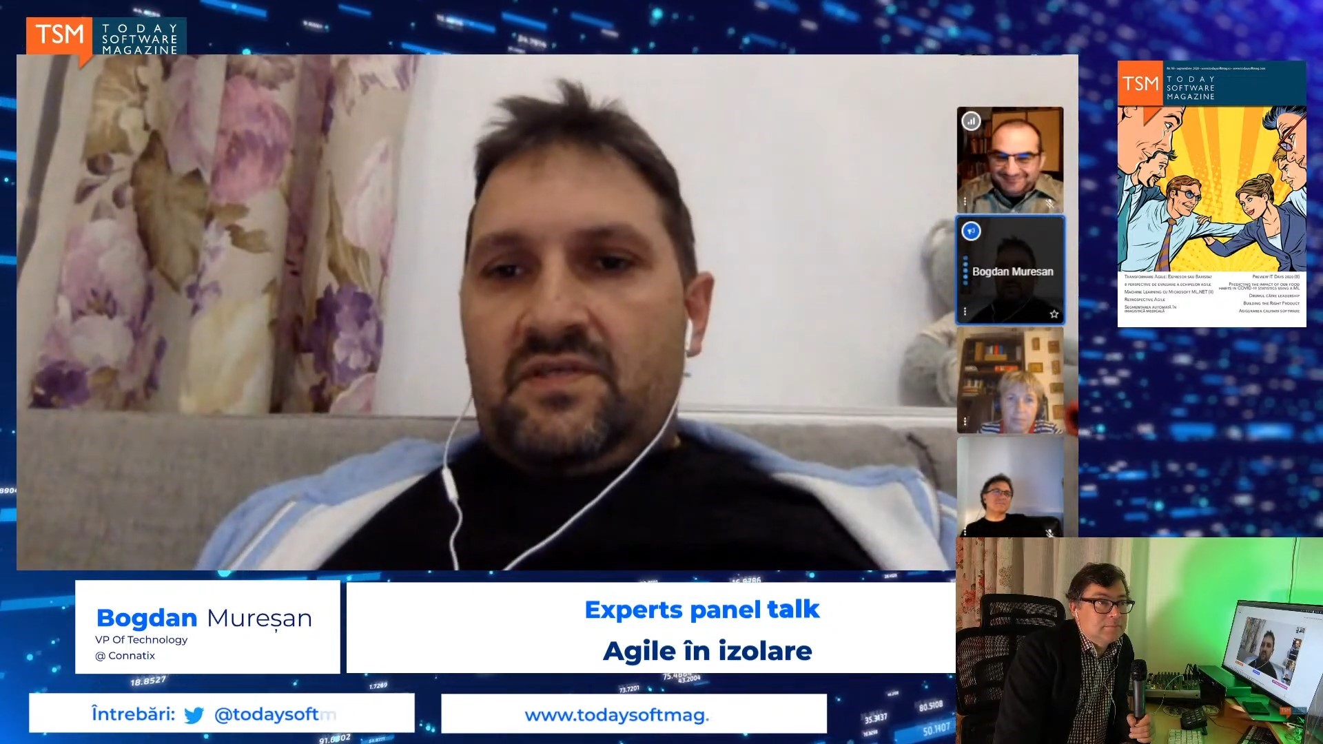 Bogdan Mureșan: Product ownerii, scrum masterii trebuie să facă un upgrade la skilluri deoarece e mai greu de gestionat situația. Izolarea a evidențiat zonele cu probleme: sincronizarea, sincope în comunicarea dintre anumite funcții. Suntem forțați să corectăm anumite lucruri.