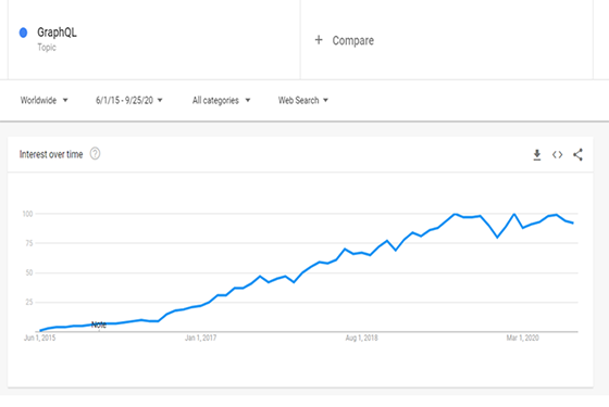 Figura 1. Evoluția GraphQL . Sursa: Google Trends