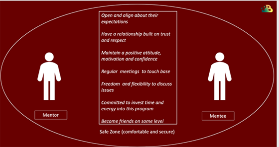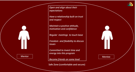 Ambii au așteptări realiste, ambii decid asupra termenilor din planul de mentorat, ambii discută deschis problemele apărute, ambii au o relație bazată pe încredere și respect, ambii țin legătura frecvent și investesc timp și energie ca parteneriatul să fie unul de succes.