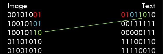 Deși datele se pot include/imbrica (embed) într-o imagine pe un câmp de biți, imbricarea LSB se realizează pe biții cel mai puțin semnificativi. Acest lucru minimizează variația de culori pe care o creează imbricarea. De exemplu, imbricarea în biții cel mai puțin semnificativi schimbă valoare culorii cu 1 unitate. Imbricarea în planul secund de biți poate schimba valoarea culorii cu 2 unități. Dacă imbricarea se realizează la nivelul celor mai puțin semnificativi 2 pixeli, rezultatul este că acele culori din fundal (on the cover) pot fi oricare dintre cele 4 culori după imbricare. Steganografia evită cât de mult posibil introducerea variațiunilor, pentru a minimiza detecția. În cadrul imbricării LSB, vom pierde mereu o parte din informația de pe imaginea din fundal. Acesta este un efect direct al imbricării directe într-un pixel. Pentru a face acest lucru, trebuie să eliminăm o parte a informației de fundal și să o înlocuim cu informația din datele pe care vrem să le ascundem.