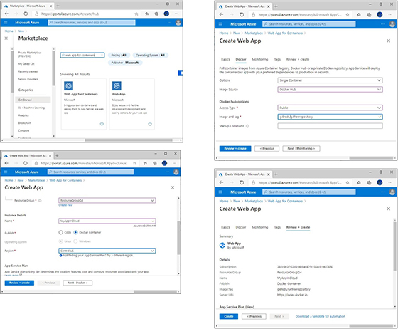 Evident, cu Docker și Azure putem face mult mai multe decât cele expuse în aceste rânduri. De exemplu, o aplicație care salvează date într-o bază de date se poate conecta la un alt container în care rulează un server de date, una dintre convenții fiind ca fiecare componentă a aplicației să fie într-un container separat și izolat. Aceasta face să fie ușor de înlocuit sau adăugat părți componente ale aplicației într-un mod flexibil, astfel încât aplicațiile se pot scala în funcție de nevoi.