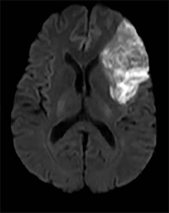 Fig. 4 SImulare de detecție infarct cerebral din RMN-DWI. Ref: [8]